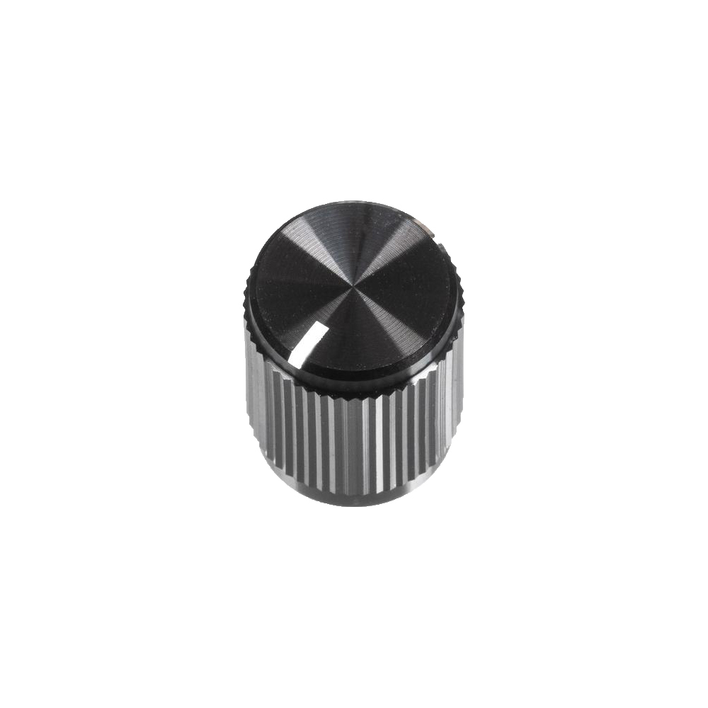 For 1/4" (6.35mm) round shafts with hex set screw12.7mm (0.5") diameter, 15.9mm (0.63") tallWhite indicator line